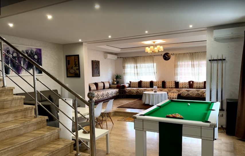 La Villa d’hôtes Au Coeur Des Plages de Rabat est ultra moderne, située dans un nouveau quartier et des plus calmes à deux pas à pieds des plages de Sid El Abed et de Val D’Or, elle est climatisée avec piscine privée et Hammam entièrement décoré de zellige et tadellak décorations traditionnelles de Fès et de Marrakech.