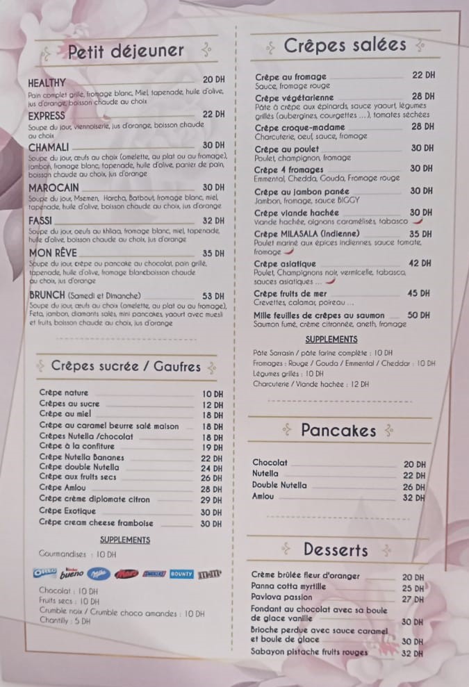 Mon Rêve, est une crêperie spécialité crêpes à la française, propose également de nombreux plats d’accompagnement tels que crêpes, desserts, yaourts et jus de fruits frais pour satisfaire tous les goûts.