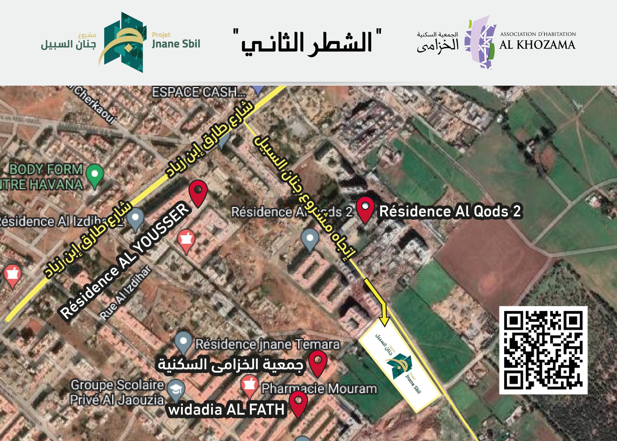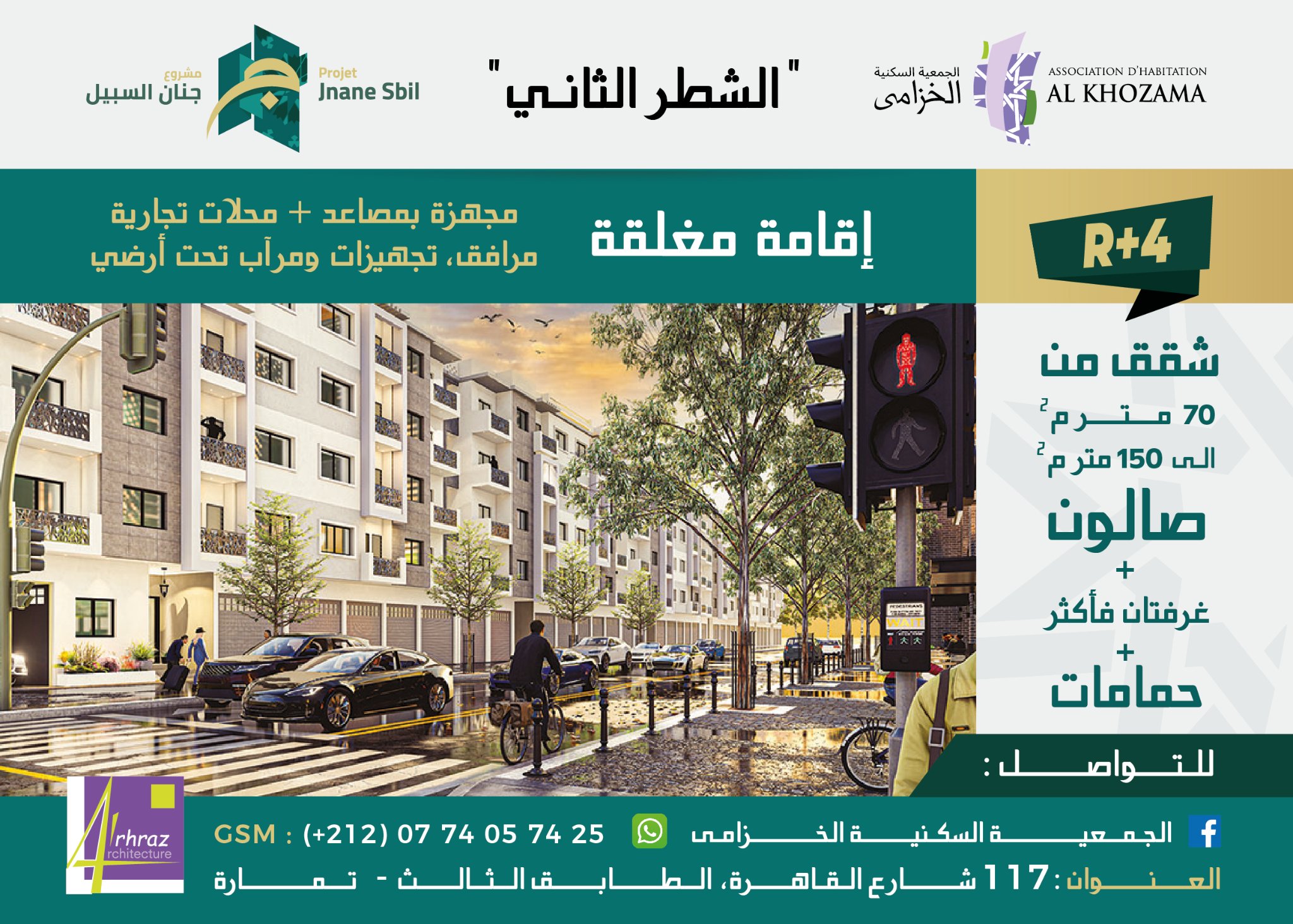 الجــمــعــيـــة الســكــنــيــة الــخــزامــى بمدينـــة تمــــارة تــضــع بــيــن أيــدي منخرطيها الـكــرام الشطر الثاني لمشروعها ” جنان السبيل” إقــامــات مــغــلــقــة مــكونــة مــن :