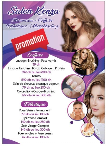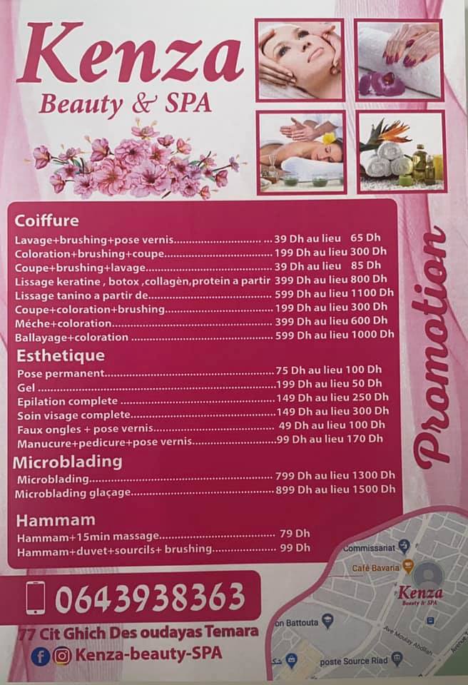 SALON KENZA propose un large choix de soins. Situé à Témara ,votre Salon de beauté vous accueille dans un cadre chaleureux.