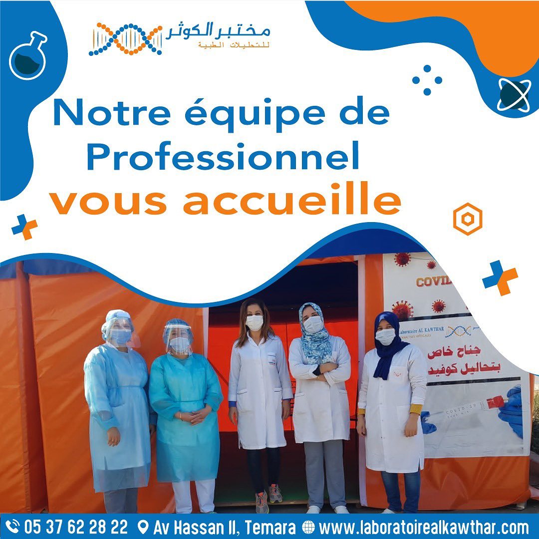Le Laboratoire d’analyses médicales AL KAWTHAR, situé à Hay massrour I, Imb n° 65, avenue Hassan II (en face de la préfecture Skhirat Temara), Temara, vous accueille du Lundi au Vendredi de 7h30 à 17h00, Samedi de 8h00 à 17h00 et Dimanche de 10h00 à 16h00.